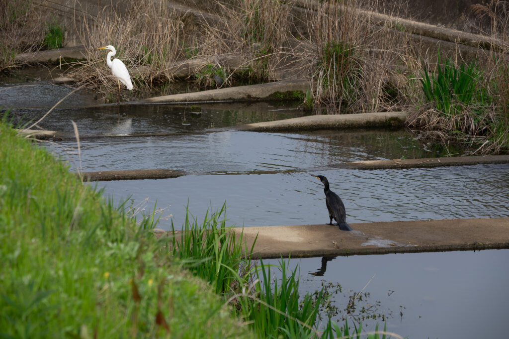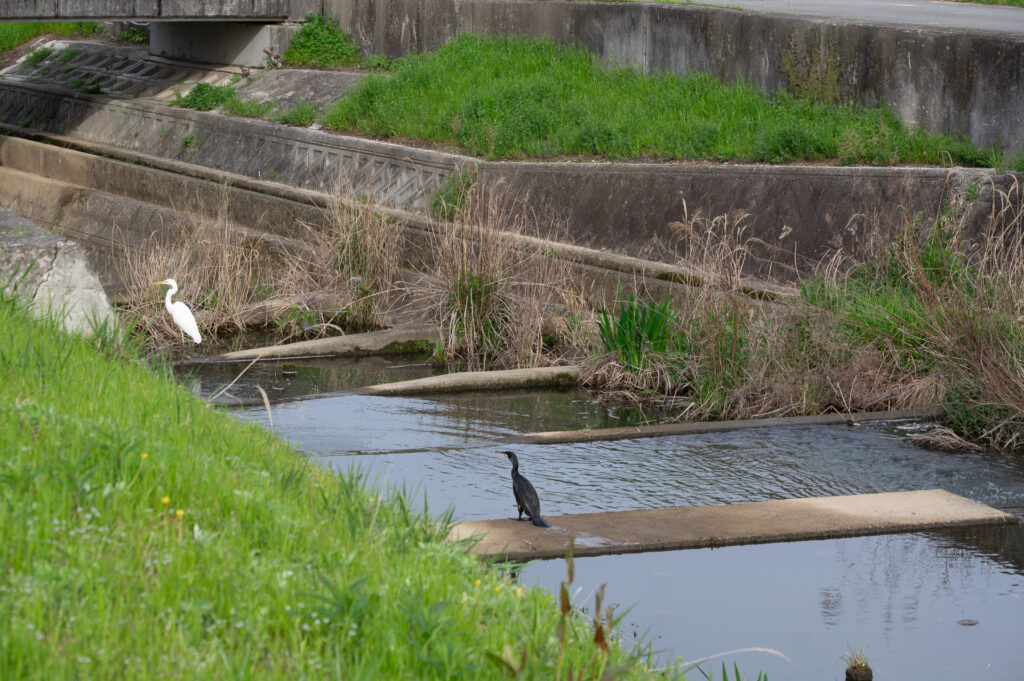 2026-04-21 2026-04-21 FINDER - こども技研 スズメ・ハトのなかま 山田川のカワウ 山田川を散歩しているとカワウがいました。ここでみるのは初めてかもしれません こちらに気がついたのかキョロキョロし始めました。 と言っても、そんなに大きく逃げることはなくスイスイ。 実はずっとダイサギと一緒でした。 移動して移動してもお互いについてくる。 友達なのかな?😊 この投稿を書いた人
